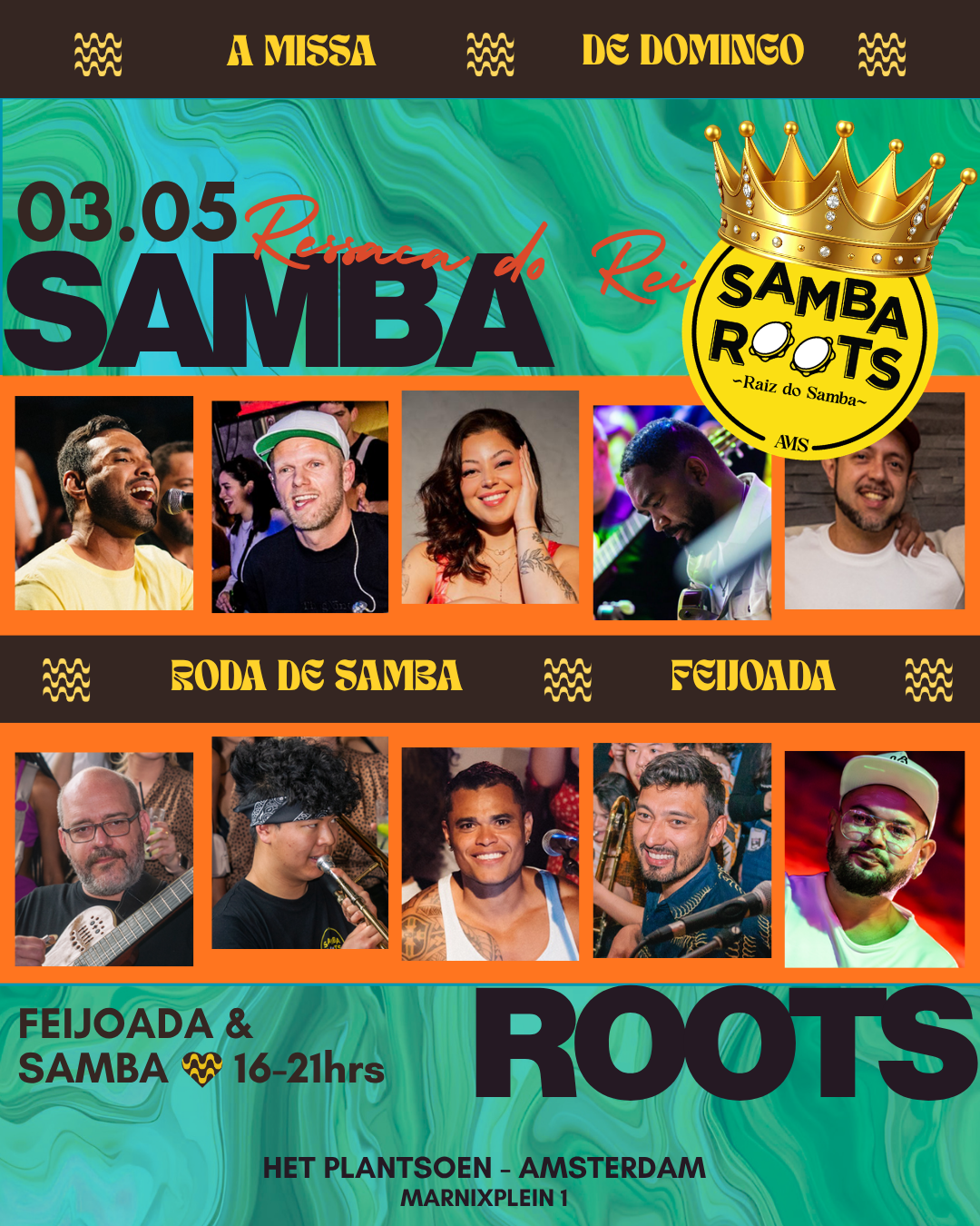 Unfortunately Samba do Rei is cancelled. But we are back with our regular Missa just a few days after Kingsday to celebrate Brazilian style. All your favorite Samba’s, Cozinha da Jana with her delicious Feijoada and Caipirinhas & cold beers to complete your Sunday.